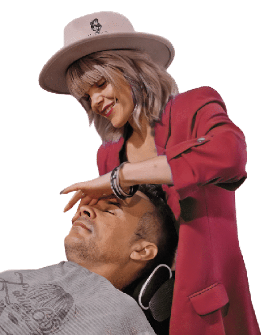 À la fois chaleureuse et exigeante, elle off re à chaque client une expérience unique, portée par son énergie communicative… et ses ciseaux affûtés.