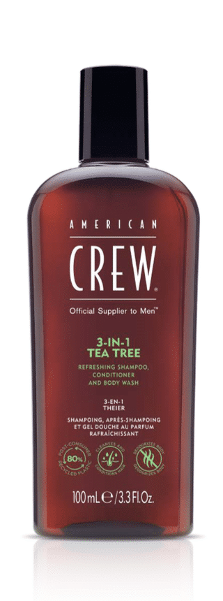 Le shampooing, l’après-shampooing et le gel douche 3-en-1 Arbre à thé d’American Crew est un produit tout-en-un qui nettoie, revitalise et prend soin de vos cheveux et de votre peau. Il élimine le sébum et laisse vos cheveux propres, revitalisés, brillants et doux. La formule laisse également votre peau douce et rafraîchie.