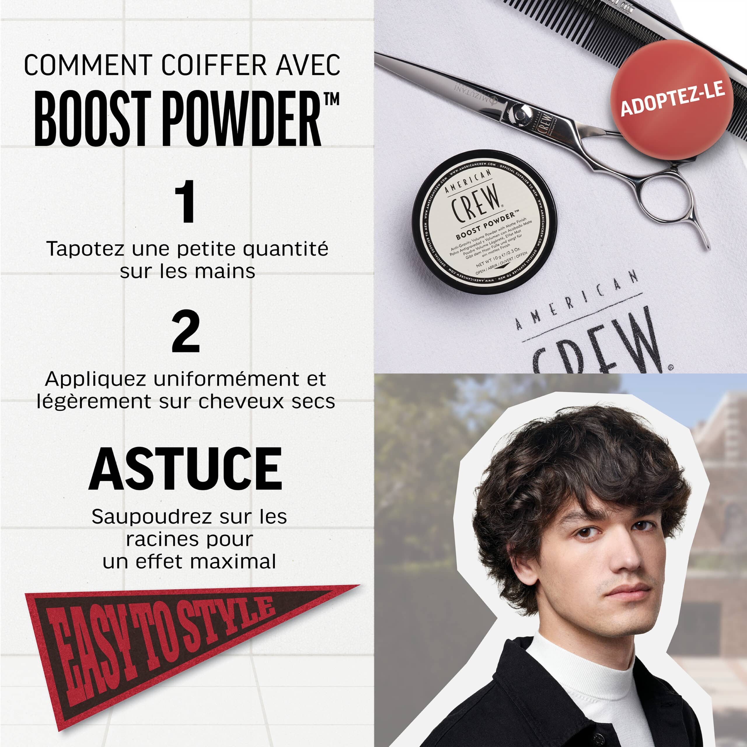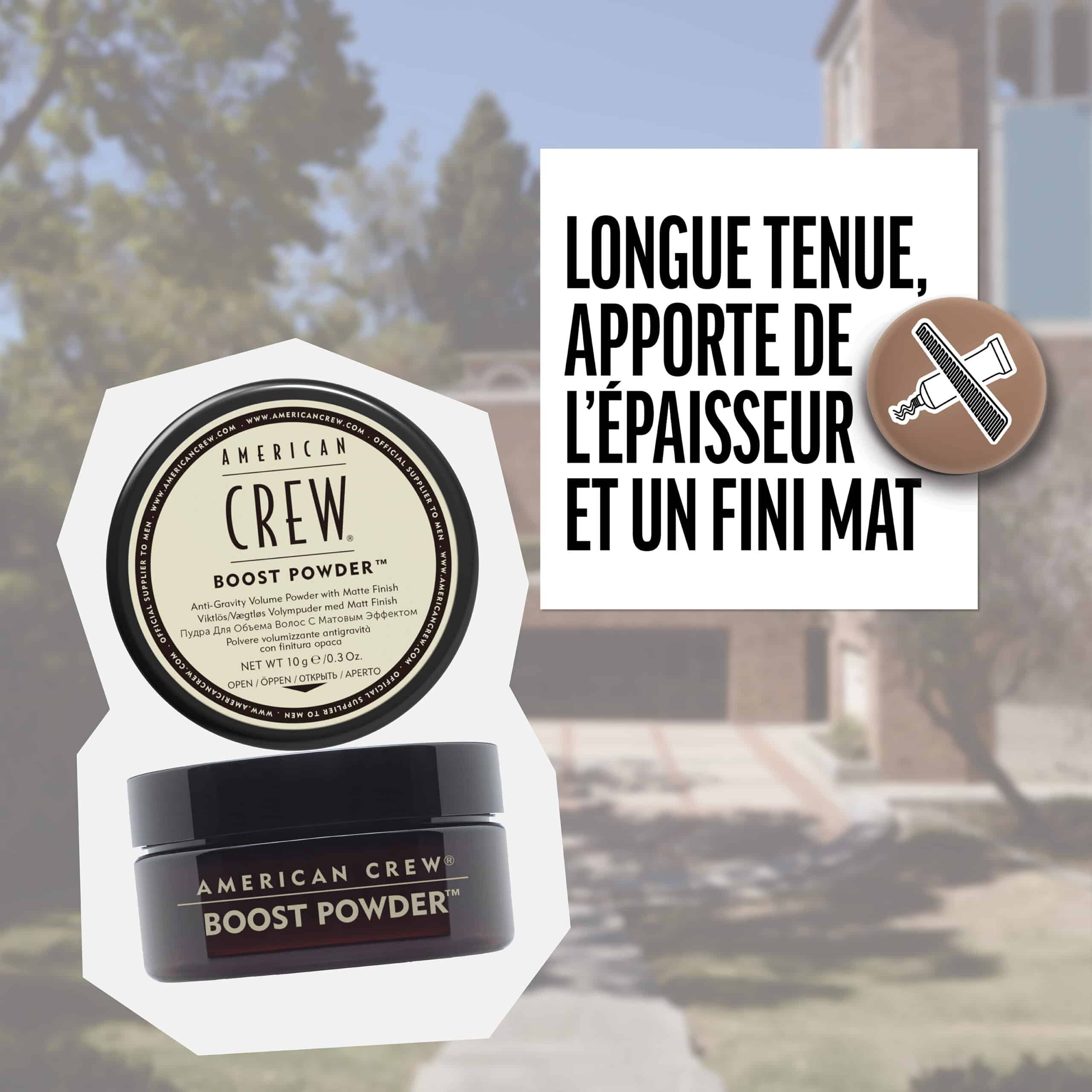 Poudre volumisante anti-gravité au fini mat. Donnez de la brillance, de l’épaisseur et un fini mat avec la poudre American Crew Boost. Cette poudre légère ajoute du grain pour une texture spectaculaire et défiant la gravité. Et, il peut être superposé avec pratiquement n’importe quel autre produit de coiffage American Crew.