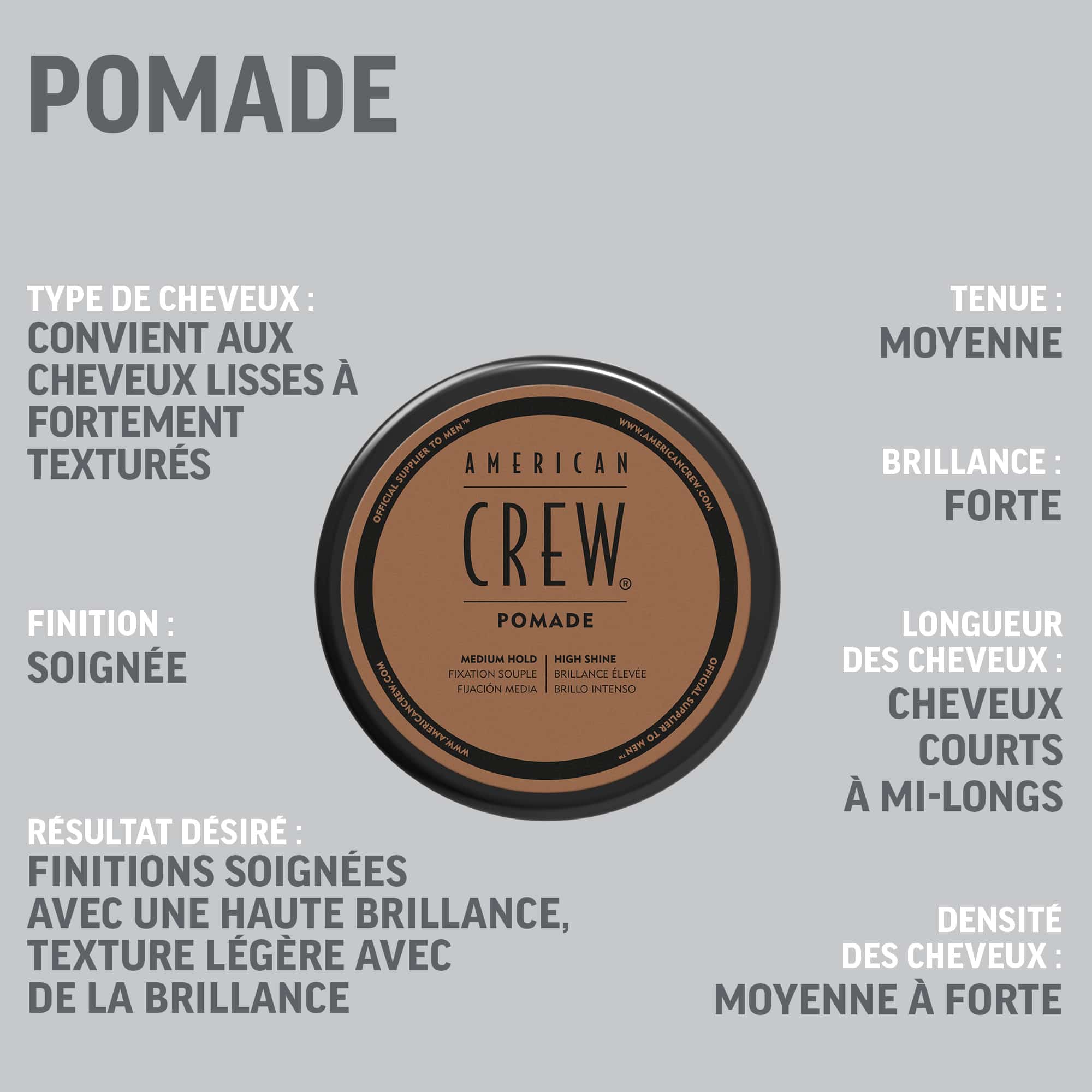 - AMERICAN CREW POMADE 85g, pâte de coiffage, tenue moyenne, forte brillance -